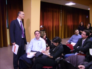 CAGLIARI, 18 APRILE 2008 - Su Presidente de sa Regione, Renato Soru, at faeddadu oe in s'adòbiu de sos Ufìtzios de Sa Limba de totu sa Sardigna, in sa sala Cosseddu de s'Ersu de Casteddu. In concluos de sa dibata, pustis de àere ascurtadu sos parres de sos operadores de sos Isportellos Linguìsticos, at fatu ischire chi sa Giunta Regionale at a presentare deretu unu disinnu de lege subra sa polìtica linguìstica de imbiare a su Consìgiu Regionale pro l'aprovare in antis chi acabet sa legisladura.